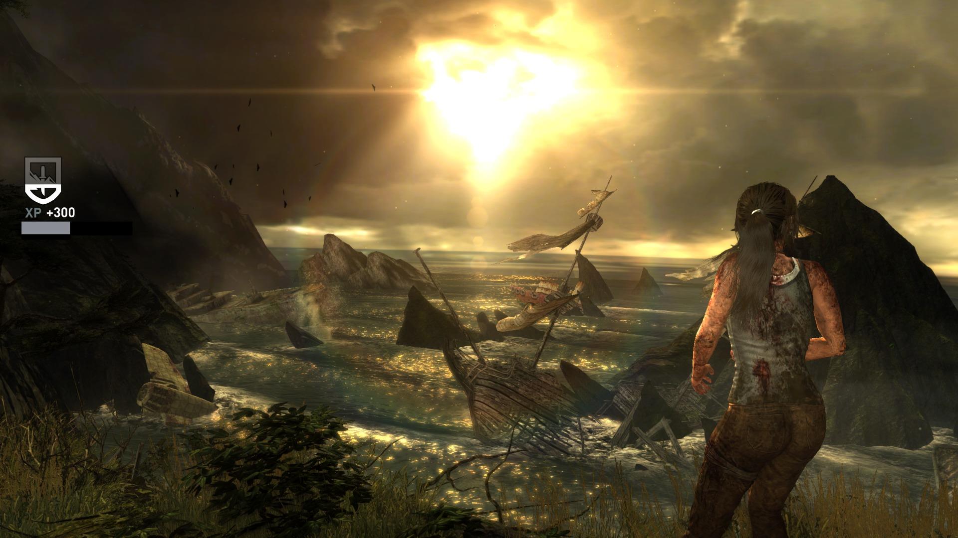 Dopo aver studiato alcuni testi, Lara si convince che per trovare Yamatai bisogna dirigersi verso il Triangolo del Drago; convinta che le presunte attività paranormali riscontrate in quella zona siano semplici dicerie, la ragazza convince i membri della spedizione a cambiare rotta. La nave però si trova nel mezzo di una violentissima e improvvisa tempesta, viene letteralmente spezzata in due e il gruppo naufraga su una misteriosa isola ai margini del Giappone. Lara rimane sola e viene tramortita ed imprigionata da un selvaggio, che l'appende e la lascia a testa in giù all'interno di una caverna. Lara riesce a liberarsi e fuggire e si mette in cerca i suoi compagni, ed esplorando l'area circostante la giovane s'imbatte in rudimentali abitazioni, vicino ai quali riecheggiano canti religiosi, e si rende conto che quell'isola è abitata.