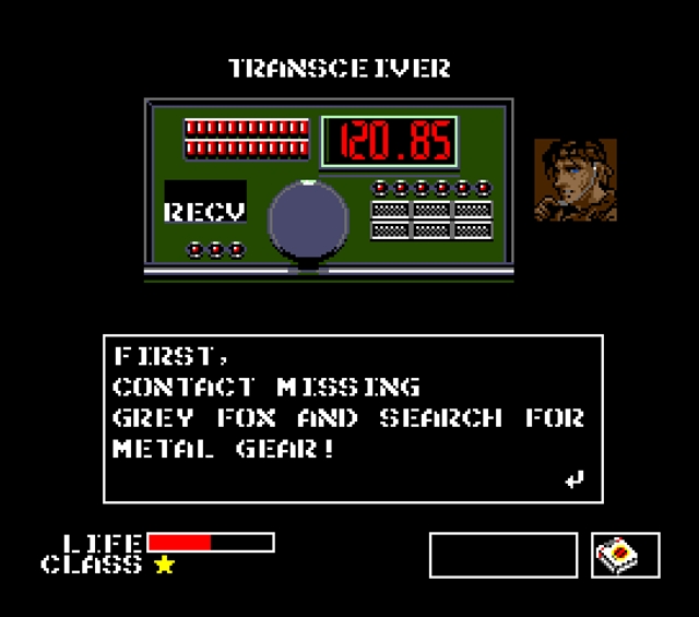 Trama: Outer Heaven, Sudafrica, 1995. Inizia l'Operazione Intrusione N313: Snake, agente dell'unità FOXHOUND supportato via radio dal suo comandante Big Boss, deve infiltrarsi in Outer Heaven, recuperare l'agente infiltratosi prima di lui Gray Fox, e distruggere "l'arma finale": il Metal Gear.