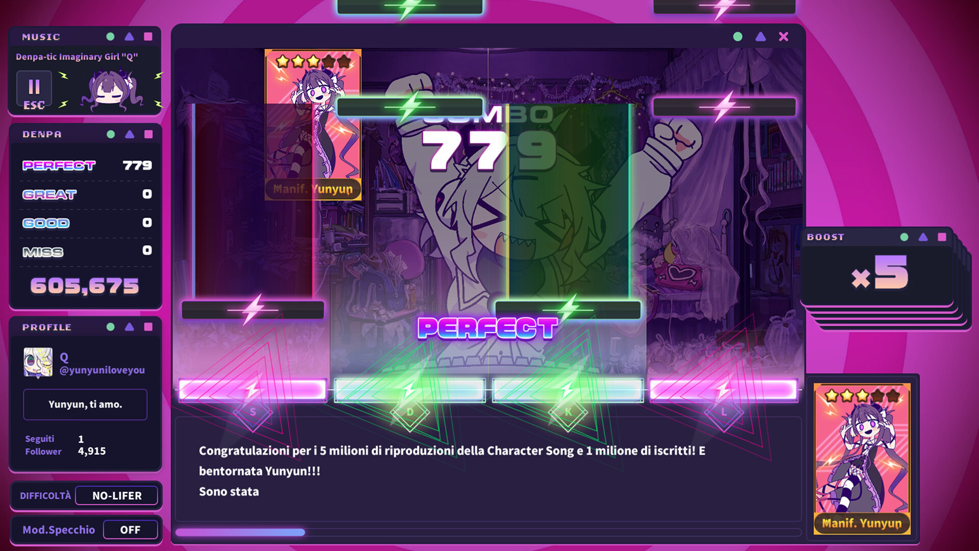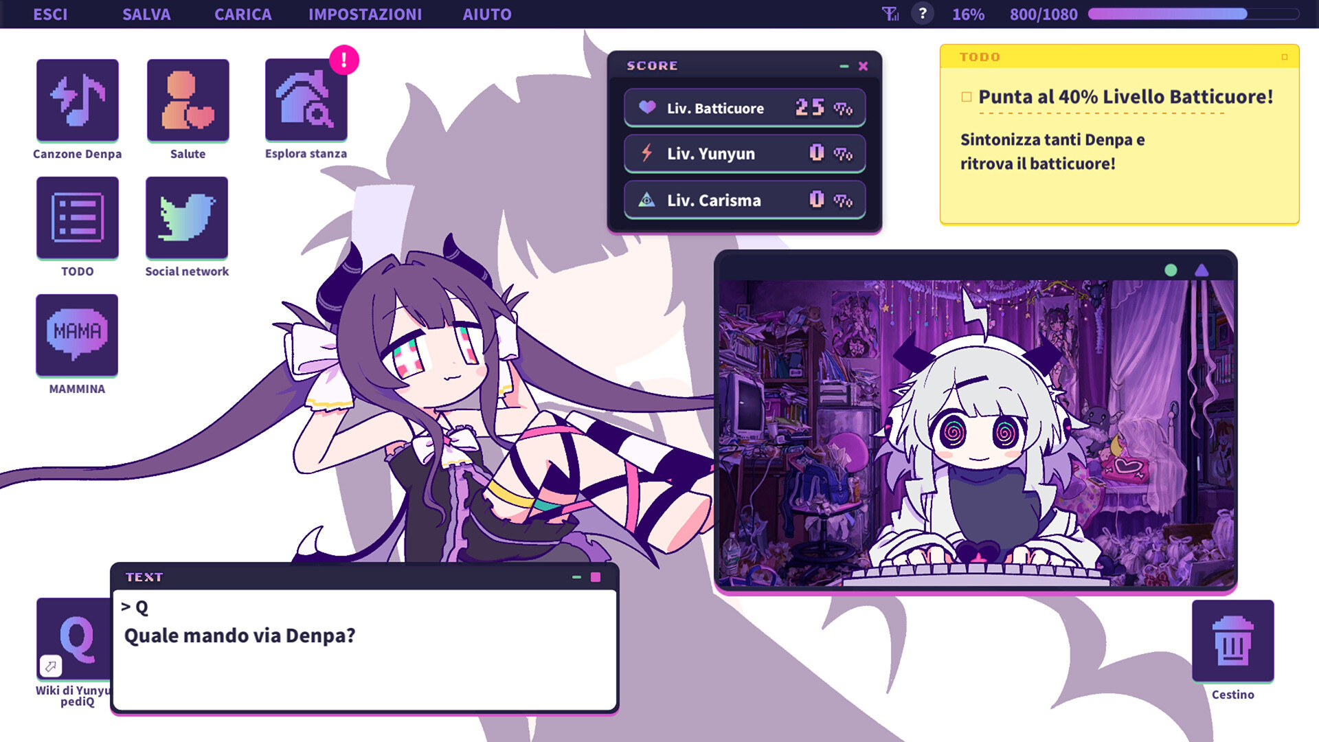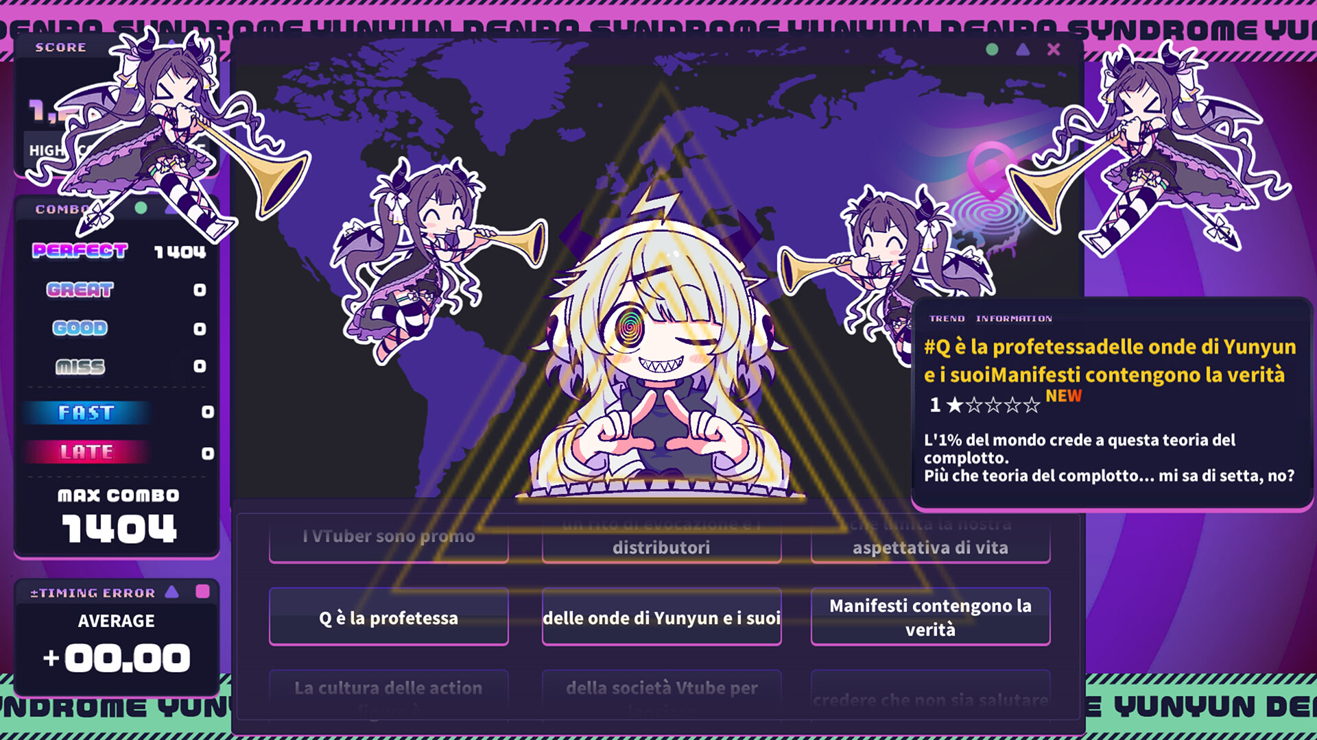 Trama: “Yunyun Syndrome!? Rhythm Psychosis” è un'Avventura ritmica in cui una ragazza Hikikomori, col cervello sballato dalle Canzoni Denpa, posta adorabili Manifesti per far impazzire il mondo di "Yunyun". Usa le tue Denpa da Otaku per mandare in Giramento questo Mondo di merda e ridurlo in rottami.