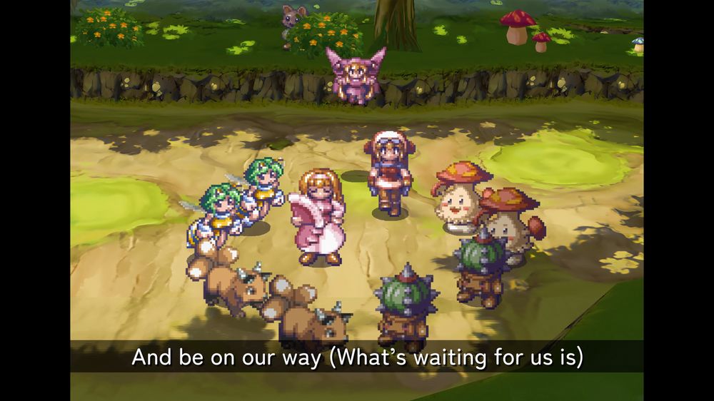I brani musicali cantati, invece, rendono questo RPG musicale veramente unico. A parte il bellissimo Eternal Sonata di Tri-Crescendo, un gioco dove le OST e il tema musicale di Chopin in un mondo magico creavano un’atmosfera sognante, non avevo mai giocato ad un titolo ispirato ai classici Disney e ai musical. In ogni capitolo troverete un momento cantato (con sottotitoli in inglese e in giapponese) che presenta un po’ i personaggi o l’avventura attuale, sempre tra sogno e battute umoristiche. Potrete anche rivedere queste scenette una volta sbloccate direttamente dal menu principale, come bonus della raccolta. Questo elemento “musical” rende il gioco ancora più adorabile, ma chiaramente non si tratta di una feature adatta a tutti i giocatori. Non sono presenti, invece, minigiochi a tema musicale o ritmico, rendendo le canzoni unicamente parte della storia e non del gameplay.