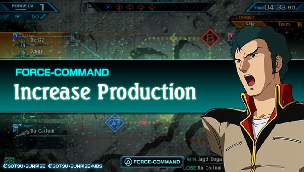 I team che il giocatore guiderà avranno una grandezza variabile a seconda della missione, si avranno da un massimo di 6 unità, divise in squadre da 2, più una warship (o comunque Mobile Armor) ad un minimo di una sola. I 5 Mobile Suit e la Mobile Armor verrano guidati dalla Cpu, il giocatore dovrà indicargli dove andare, chi seguire o cosa difendere. Se nelle prime missioni le truppe alleate potrebbero apparire inutili, proseguendo imparare a gestirle diventerà fondamentale così come lo sarà intuire il giusto tempismo per i boost attivabili spendendo i punti accumulati eliminando i nemici o conquistando zone.