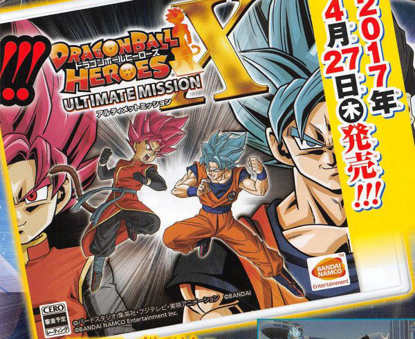 Il nuovo gioco si chiamerà Dragon Ball Heroes: Ultimate Mission X e uscirà in Giappone in esclusiva per Nintendo 3DS il 27 aprile. Le prime copie del gioco conterranno un set speciale da cinque carte con i seguenti personaggi: Son Goku: Xeno, Vegeta: Xeno, Dark Majin Towa, Vegito (Super Saiyan Blu) e una Special Hero Card.