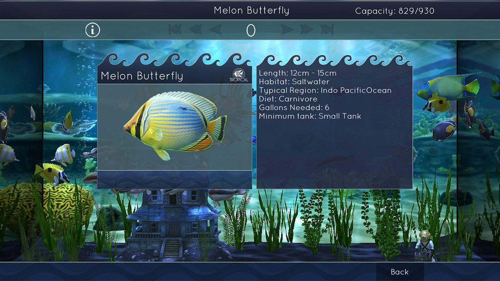 Attualmente sono presenti 25 specie diverse di pesci tropicali. Sono effettivamente un po' pochine, considerando anche che non tutte possono essere introdotte in tutti gli acquari, ma gli sviluppatori hanno garantito che verranno rilasciati in futuro aggiornamenti gratuiti che amplieranno l'offerta. Sarebbe bello, ad esempio, avere anche la possibilità di creare acquari con pesci d'acqua dolce; e probabilmente li vedremo, dato che nei pesci attualmente presenti c'è un simbolo che li contraddistingue come "tropicali", e il che sarebbe inutile se non fosse pianificata l'introduzione di altre tipologie di pesce.