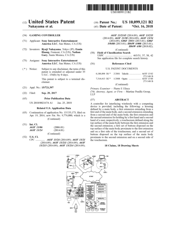 Sony, presso l'ente statunitense del rilascio brevetti, ha recentemente depositato un "patent" alquanto interessante dove secondo le indicazioni rilasciateci si può pensare ad un dispositivo dotato di tasti e touch screen con le sembianze di un tipico controller PlayStation (DualShock) in grado di interagire con altri apparecchi tecnologici connessi alla rete internet.
