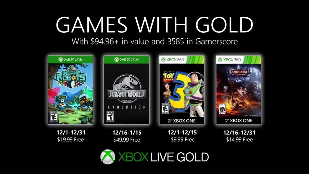 Mancano 3 giorni alla fine del mese di novembre, con alcuni titoli ancora disponibili, ecco quindi che Microsoft ha annunciato quali titoli regalerà a dicembre 2019 agli utenti iscritti a Xbox Live Gold, a svelarlo come al solito sono il blog di Larry "Major Nelson" Hryb e Xbox Wire. Come di consueto, Games with Gold permette agli utenti che pagano l'abbonamento al servizio online di Microsoft di scaricare gratuitamente 2 titoli per Xbox One e altri 2 per Xbox 360, ma funzionanti anche sulla One grazie alla retrocompatibilità. Vediamo insieme quali sono i giochi del prossimo mese: