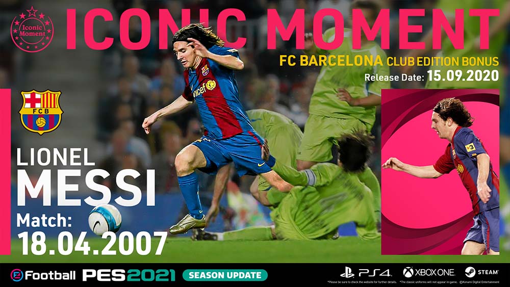 Messi, giunto ora alla sua sesta apparizione sulle copertine della serie eFootball PES, rappresenta l’eccellenza del calcio ed è il testimonial perfetto per festeggiare al meglio l’anniversario di KONAMI che celebra quest’anno 25 anni della serie PES.