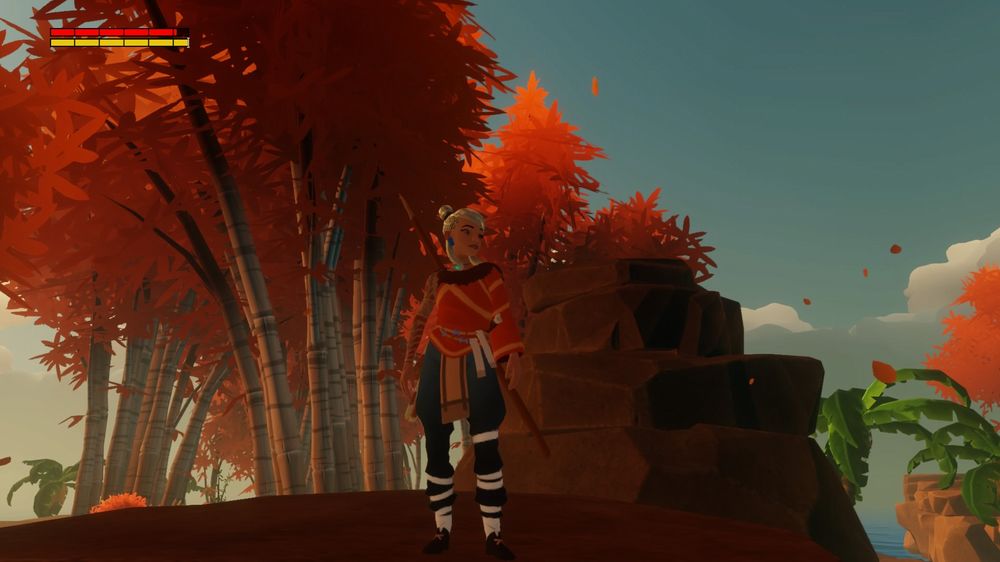 La gestione delle risorse è ben calibrata, infatti dall’inizio alla fine rimane sempre un aspetto di cui tenere conto mentre ci si sposta da un’isola all’altra donando al viaggio un mood particolarmente selvaggio e creando il bisogno concreto di esplorare le numerose aree messe a disposizione in ogni capitolo. Per quanto tale impostazione dia molta personalità a Windbound e lo elevi rispetto ai ‘semplici’ open-world survival dove gli unici oggetti realmente interessanti sono munizioni e cure e spesso si finisce per avere in abbondanza entrambe, è anche vero che alla lunga il ripetersi di certe azioni quali cuocere la selvaggina o deforestare la giungla per raccogliere legno/erba/bambù alla lunga diventi monotono e noioso. Costruire non richiede mai troppi materiali, ma per l’ottenimento di alcuni è obbligatorio sporcarsi le mani o costruirli tramite step, tuttavia è anche possibile limitare al minimo questo aspetto e completare l’avventura senza alcuni tool apparentemente basilari.