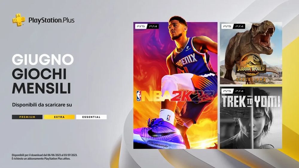 Come di consueto, finito un mese Sony annucia con un piccolo anticipo i titoli che venogno offerti gratuitamente a tutti gli abbonati a Playstation Plus su Playstation 5 e Playstation 4, indipendentemente dal grado dell'abbonamento. Dopo un maggio caratterizzato da Chivalry II, Descenders e Grid Legends , di cui potete leggere la nostra recensione, per un mix di azione medievale e frenetiche corse, dal 6 giugno fino al 3 luglio i giocatori potranno riscattare NBA 2K23, Jurassic World Evolution 2 e Trek to Yomi.
