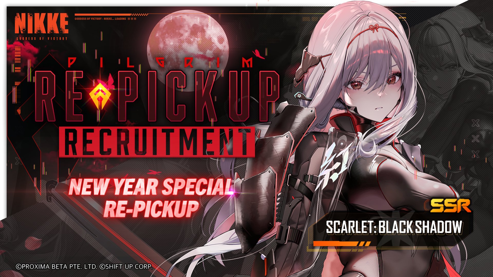 Il passato di Scarlet, la spada che uccide i Raptures, SSR Nikke Scarlet: Black Shadow, torna nel Nuovo reclutamento speciale di Capodanno. Scarlet: Black Shadow esercita una varietà di attacchi formidabili basati sul numero di colpi. Quando usa la sua abilità Burst, le condizioni basate sul numero di attacchi vengono alleviate, consentendole di esibirsi in modo eccezionale sul campo di battaglia.