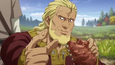 Episodio molto interessante e che bello rivedere nuovamente Thorfinn sorridere. Il padre del padrone è il classico brontolone dal cuore d'oro, perciò già lo adoro!