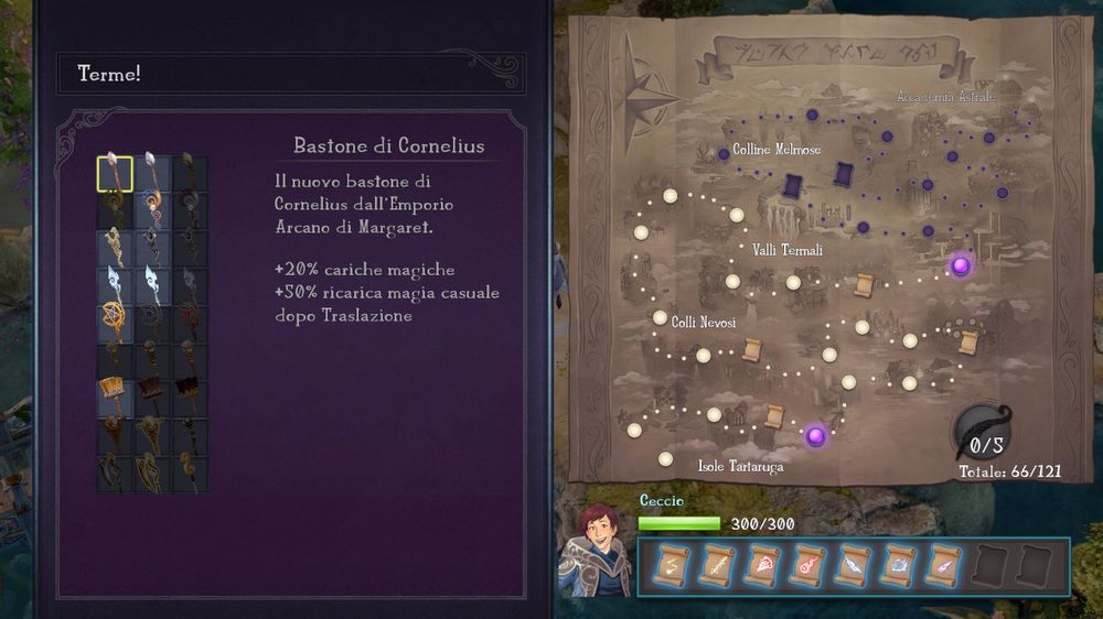 Il recuperare una pergamena si tradurrà con la possibilità, a fine livello, di aggiungere un incantesimo nuovo di zecca al nostro limitato arsenale magico. Questo permette, con l'avanzare dei livelli, di personalizzare il proprio mago in maniera significativa, potendo andare a pescare da un arsenale di una cinquantina circa di incantesimi diversi e vari. Un altro contributo alla personalizzazione è dato dai classici livelli di esperienza. Ogni nuovo livello concede un punto abilità da spendere in un albero che permette un'ancora più profonda scelta su come evolvere il nostro spara-magie novellino. Le specializzazioni sono varie: velocizzare la ricarica, aumentare i danni di un certo elemento o tipo di magia, diventare resistenti a certi elementi e tanto altro. Ogni cinque punti spesi si sbloccano le abilità successive della relativa scheda di abilità, fino ad arrivare a quelle più utili ed impattanti. Se aggiungiamo che col prosieguo del gioco potremo sbloccare fino ad altre due schede di abilità per ogni personaggio, le possibilità aumentano in maniera esponenziale. Preferisco spendere i punti in maniera equilibrata fra le tre schede o mi specializzo in una sola per poter arrivare prima alle abilità più forti?